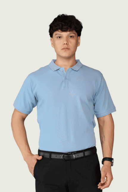 Men’s Luxury Pima Cotton Sky Blue Polo T-Shirt – Soft, Lightweight, Everyday Comfort