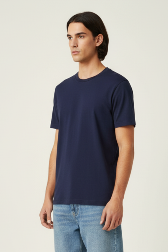 Home Round Neck Men’s Luxury Pima Cotton Round Neck T-Shirt – Navy Blue | Soft, Lightweight & Everyday Comfort