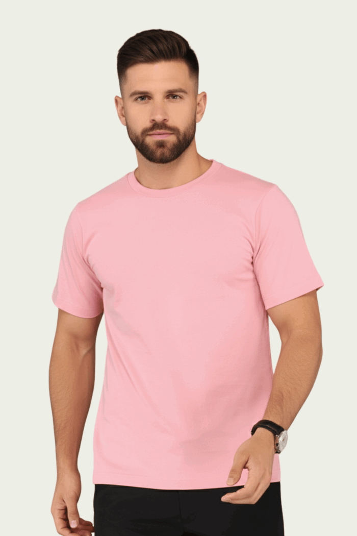 Men’s Luxury Pima Cotton Pink Round Neck T-Shirt – Soft, Lightweight, and Perfect for Everyday Comfort
