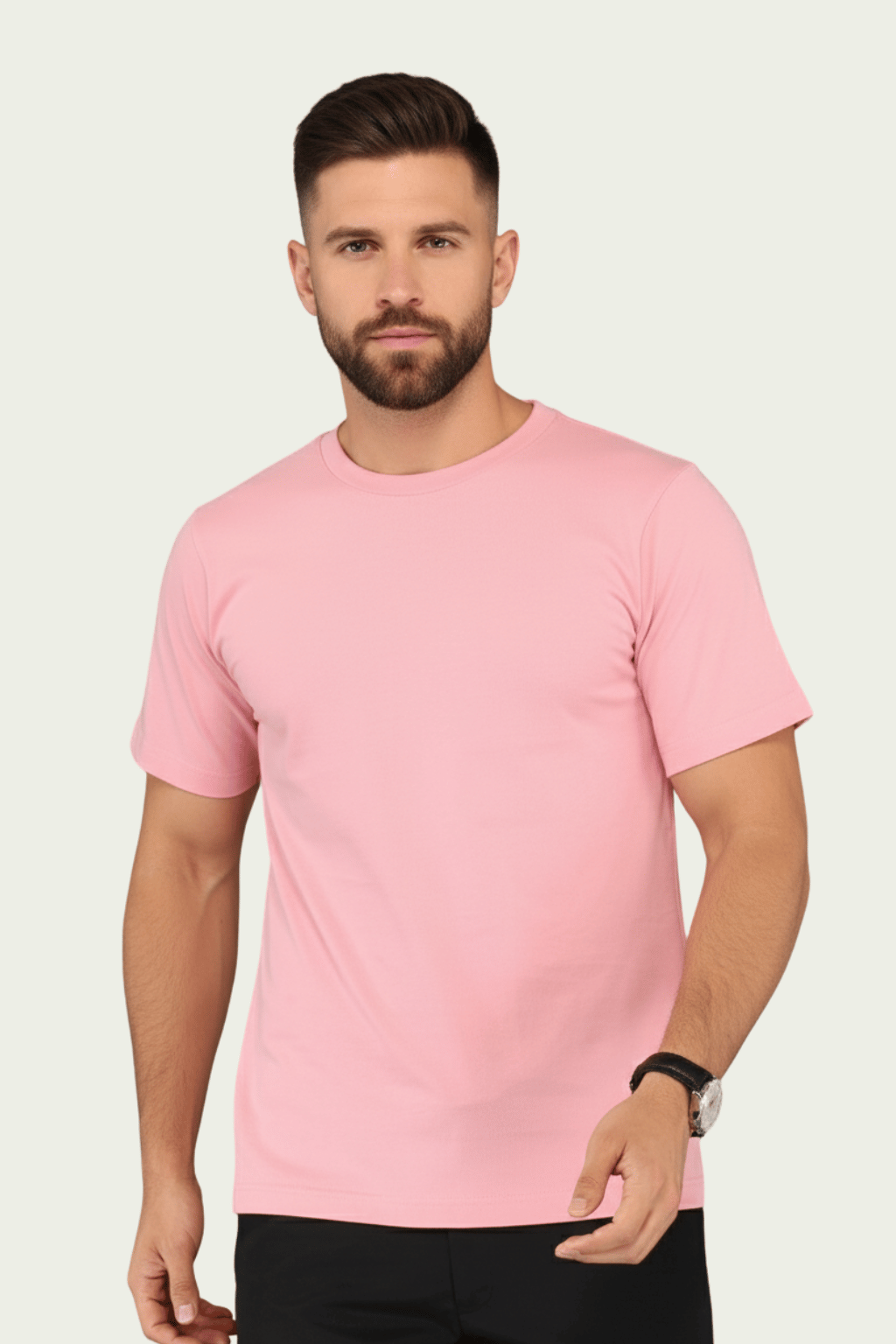 Home Round Neck Men’s Luxury Pima Cotton Pink Round Neck T-Shirt – Soft, Lightweight, and Perfect for Everyday Comfort