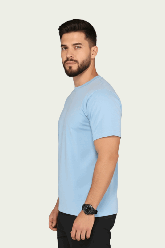 Men’s Luxury Pima Cotton Sky Blue Round Neck T-Shirt – Soft, Lightweight, and Designed for Everyday Comfort